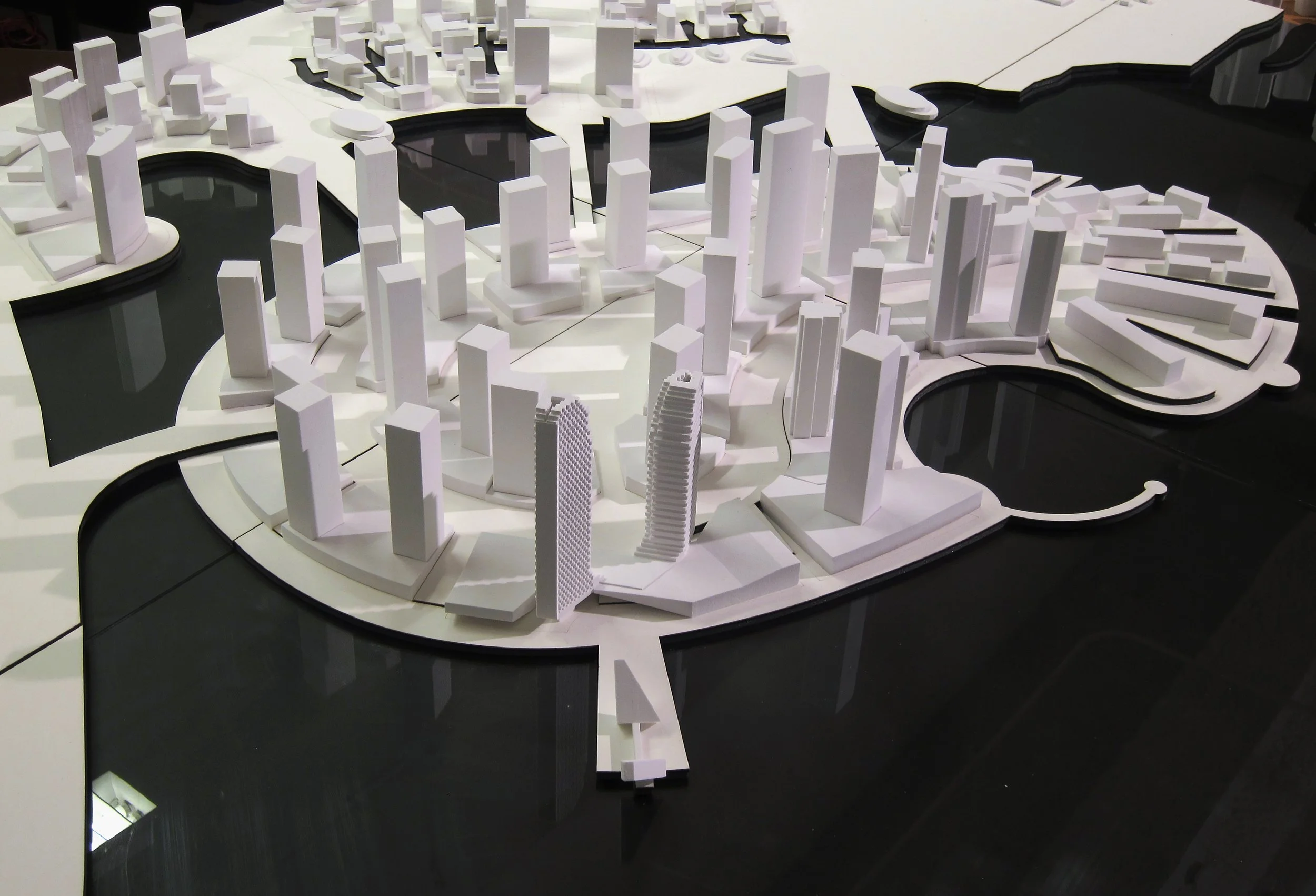 The towers create a sophisticated, subtle skyline profile — their corners are softened, and the forms gradually taper at the upper levels as they “dissolve” into the sky. The team employed computational design and parametric modeling to shape the towers for optimal views from each room, minimize shadows on the pool deck and ground-level outdoor recreation areas, and study hundreds of different unit mixes to explicitly tie the architectural solution to the client’s business model.