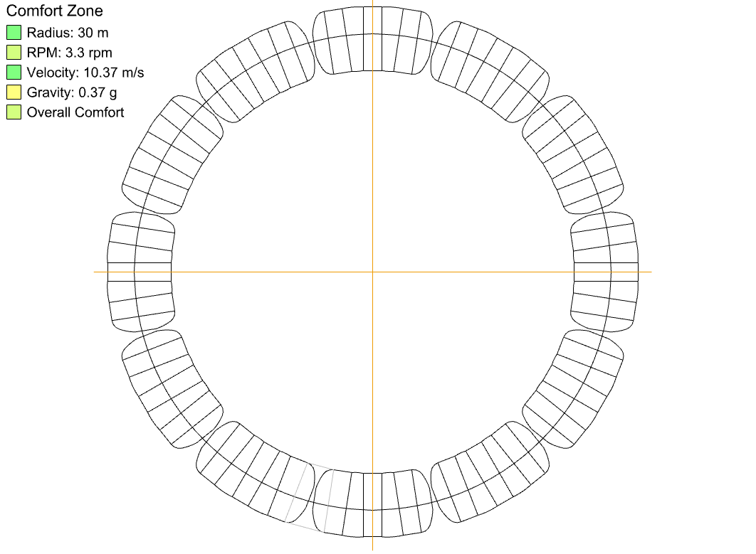 This is a proposal for a speculative artificial gravity space station. The intent is to provide a practical, modular construction system built on ISS heritage: 12 nearly identical modules fabricated and outfitted on Earth then launched in a rocket fairing. Each module is a mix of aluminum and fabric pressure vessel, with rigid rings connected by shaped fabric sections to enable a curved overall module form that aligns the interior floor of each section with the spinning station’s gravity vector. The primary contiguous floor is at a 30-meter radius, creating an approximate apparent Martian gravity of 0.37g at a rotational velocity of 3.3 rpm, but other gravity regimes are possible as well. A deployable, integrated truss structure supports solar arrays, radiators, and a tunnel connecting the central core module to three of the radial modules.